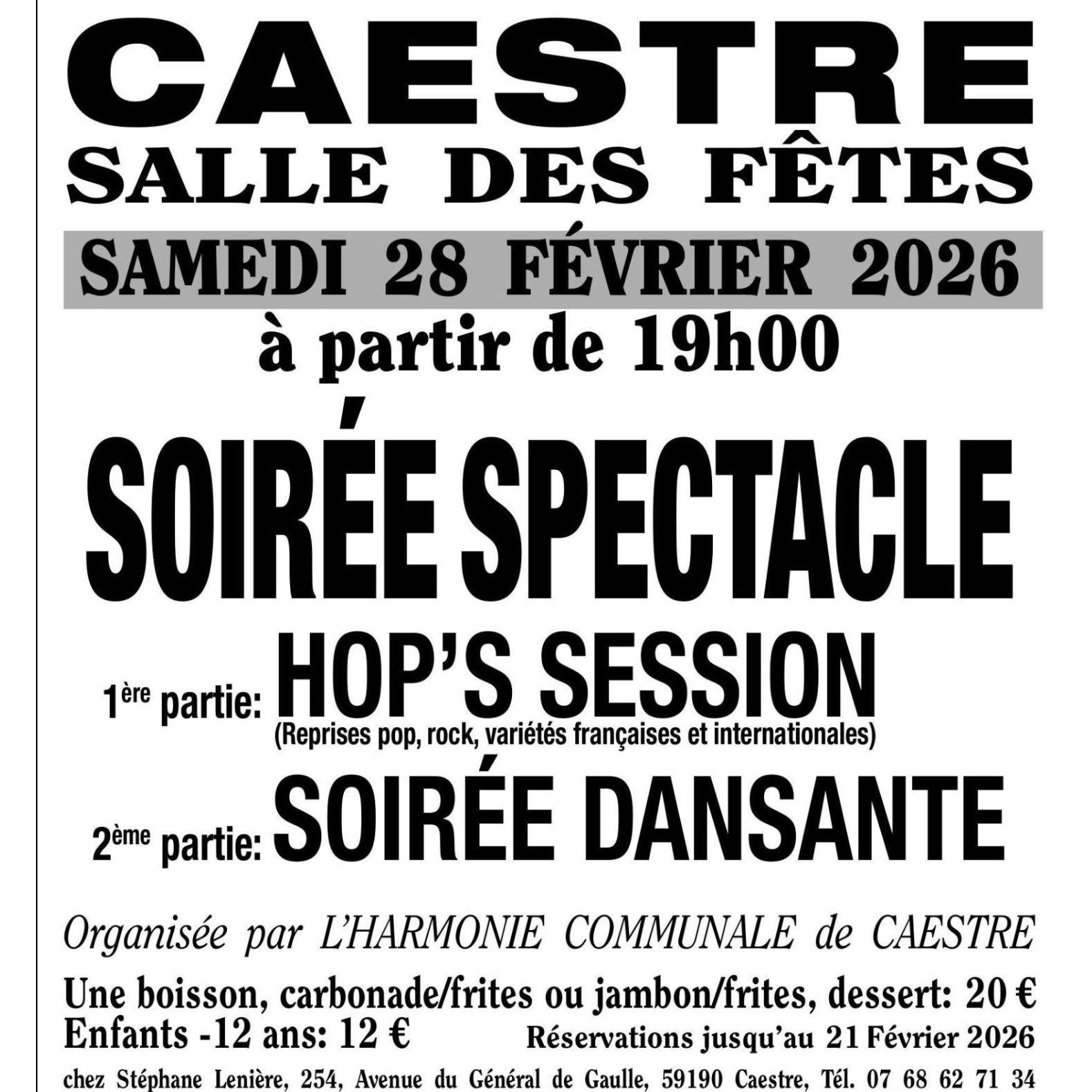 L'Harmonie Communale organise le samedi 28 février une soirée spectacle à la salle des fêtes.