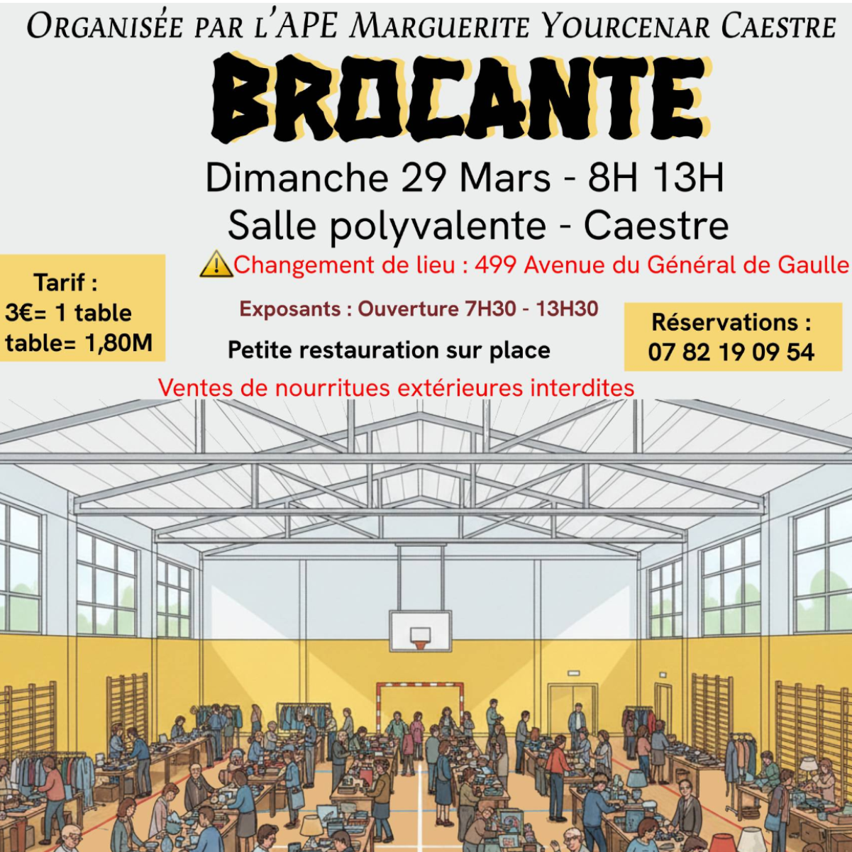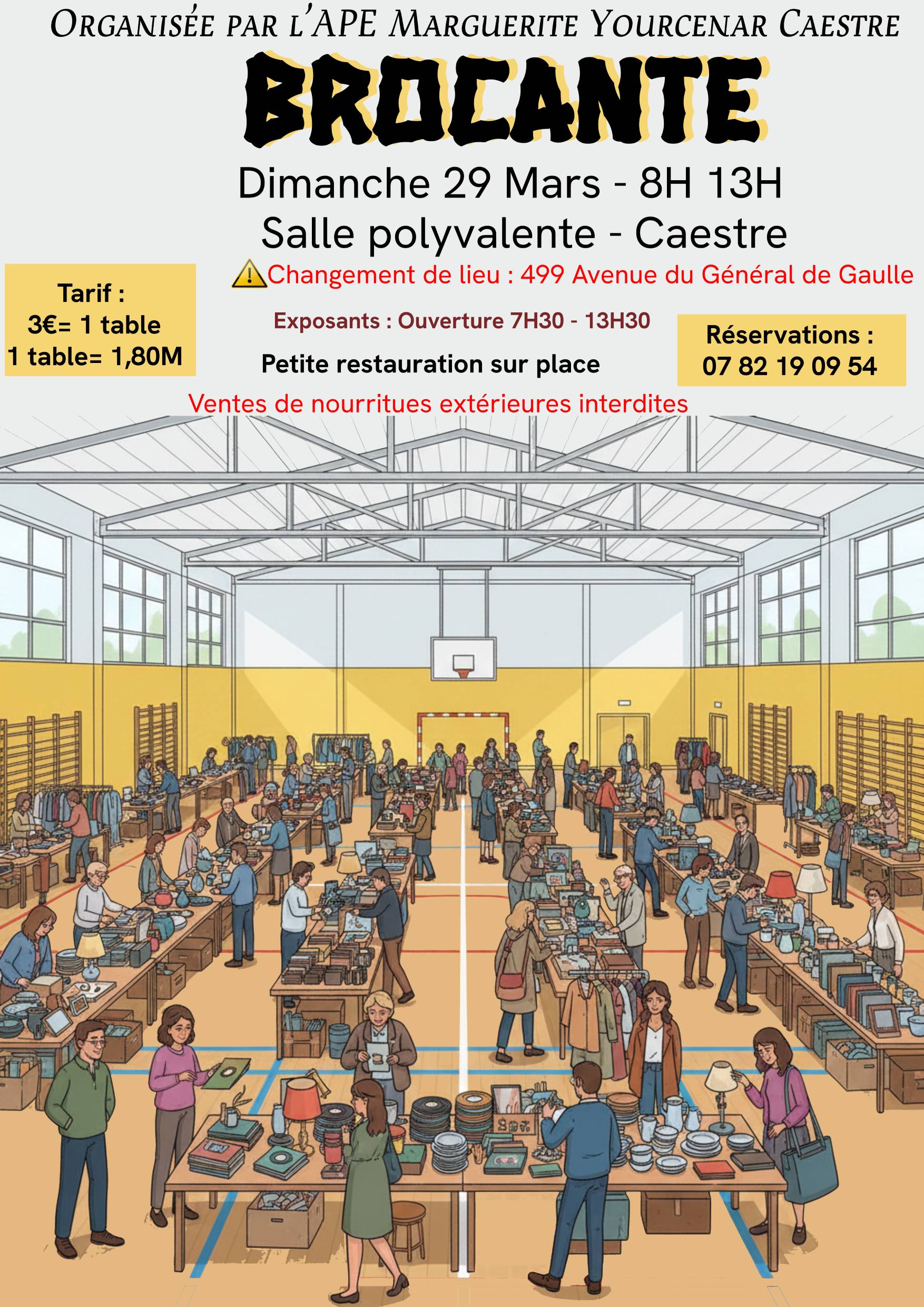L'APE Marguerite Yourcenar organise une brocante le dimanche 29 mars de 8h à 13h, à la salle polyvalente.