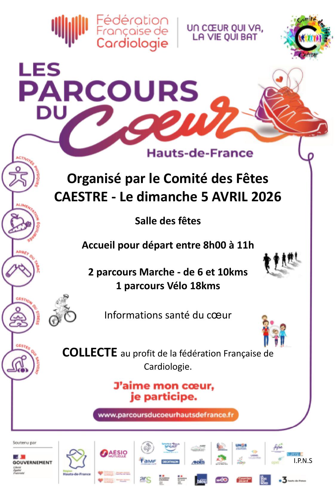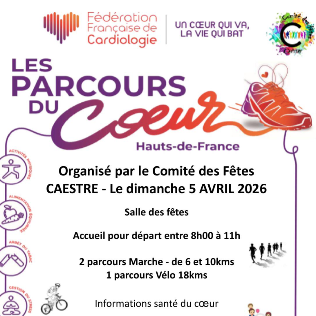 Le Comité des Fêtes organise le Parcours du Coeur le dimanche 5 avril dès 8h. Départ à la salle des fêtes.