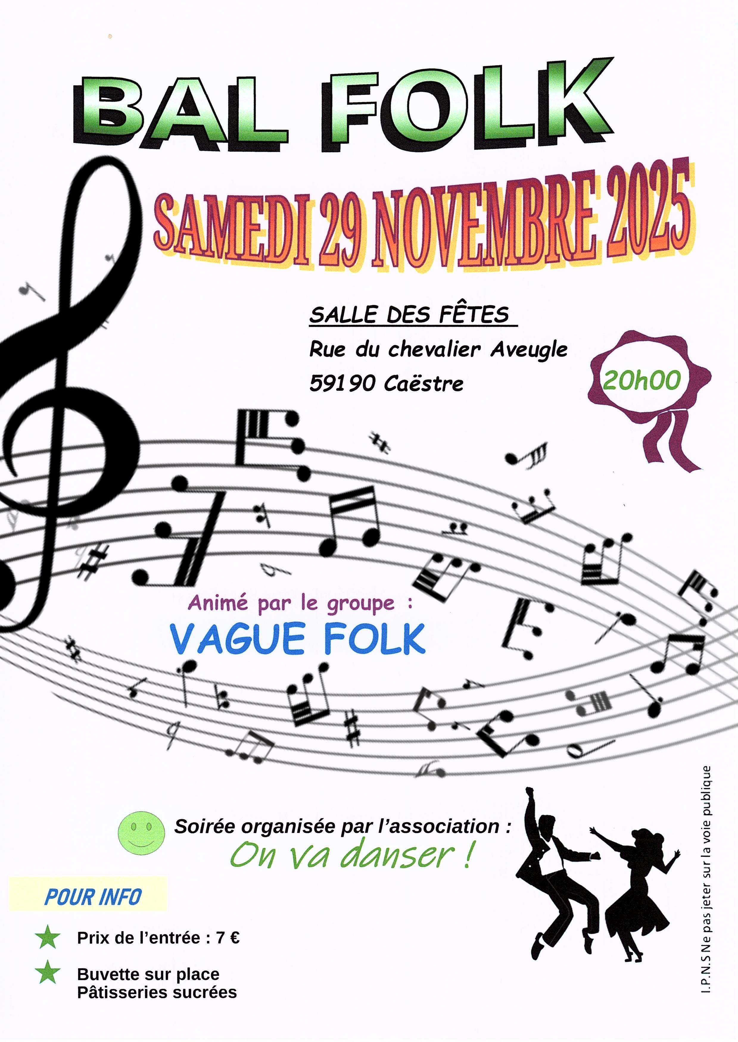 L'association On va danser ! organise le samedi 29 novembre à 20h un Bal Folk à la salle des fêtes.